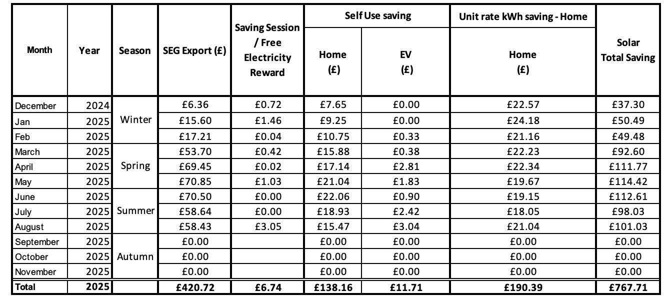 Overall I'm impressive with a total savings so far this year of £767.71. If I included unit cost savings from electricity consumed by the EV overall savings would be around £1705.51 so far.