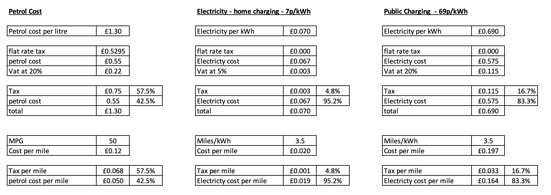 When we compare the 'fuel' cost difference to run a petrol car and an EV one thing we often overlook is the different tax rates applied to the two fuel methods.